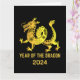Año del dragón gradiente dorado animal del zodíaco chino tarjeta de Año Nuevo negra. Perfecto para una tarjeta de felicitación del Año Nuevo chino. Personalízala con tu nombre.