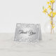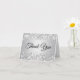 Crea tu propia tarjeta decorativa de agradecimiento. El texto interior se puede personalizar con un mensaje de texto de agradecimiento especial. El fondo gris plateado del gradiente le aporta un toque moderno y elegante para su día especial. Puede cambiar la configuración de opacidad en el fondo del degradado. El falso purpurina plateado es arte digital creado con gráficos que se imprimen como una foto.