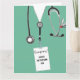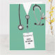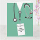 Plantilla de tarjeta de graduación de la escuela de enfermería personalizada que incluye exfoliaciones únicas del hospital verde y graciosos navíos del ejército suizo. Edita texto para añadir el nombre de tu enfermera favorita.