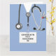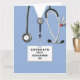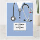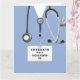 Tarjetas de graduación creativas de la escuela de enfermería con matorrales azules, un estetoscopio y cuchillo del ejército suizo. Para personalizar el texto de edición para agregar el nombre de la enfermera.
