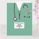 Plantilla de tarjeta de graduación de la escuela de enfermería creativa con matorrales verdes del hospital. Para personalizar el texto de edición para añadir el nombre de su enfermera, asistente médico o médica favorito.
