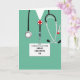 Plantilla de tarjeta de graduación de la escuela de enfermería creativa con matorrales verdes del hospital. Para personalizar el texto de edición para añadir el nombre de su enfermera, asistente médico o médica favorito.
