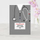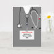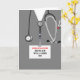 Plantilla creativa de tarjeta de graduación de enfermería con mamelucos de hospital grises. Edite el texto para agregar nombre y mensaje personal.