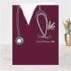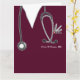 Divertida tarjeta de graduación de una escuela de medicina creativa, con matorrales de hospital con un cuchillo del ejército suizo en el bolsillo. Editar texto para agregar el nombre del médica.