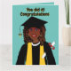 Esta linda tarjeta de graduación incluye a un chica afroamericano con una gorra negra y vestido. Envíe una tarjeta al graduado en su vida para hacerles saber que está orgulloso de ellos.