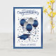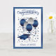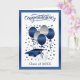 Felicidades por tu tarjeta de felicitación de graduación con gorro mortero azul plateado, globos y diploma