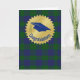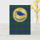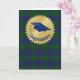 Tarjeta de saludo de graduación masculina, con un patrón de tartán de plaid escocés clásico, azul y verde. Los gráficos de la gorra de mortero de un grano azul están dentro de una estrella de oro. El texto curvo azul dice Felicitaciones. Personalice el texto, dentro de la tarjeta, para que se ajuste a sus necesidades.