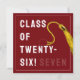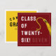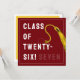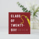 Tarjeta de graduación creativa para graduados de la clase 25 con gorra de grado marrón, tassel de oro y línea divertida. Para personalizar el texto de edición para añadir su nombre.