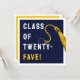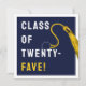 Tarjeta de graduación creativa para la graduación de la Clase 25 con gorra de grado azul marino, tassel de oro y línea divertida. Para personalizar el texto de edición para añadir su nombre.