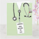 Tarjeta única de graduación de enfermeras con exfoliaciones hospitalarias para el grado de la escuela de enfermería. Para personalizar el texto de edición para añadir nombre.