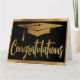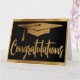 Faux Gold y negro elegante carta de felicitaciones modernas. Presenta una graduación o un tapón de grado y un moderno saludo de tipografía de estilo manuscrito. Perfecto para graduados de jardines de infancia hasta la universidad.