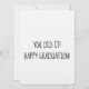 Presentando un lindo diseño de una figura con una calculadora y las palabras: "Querida matemática, estoy harta de tratar de encontrar tu x. Se acabó, amigo. Déjalo ir". En el interior, la tarjeta dice: "¡LO HICISTE! ¡GRADUACIÓN FELIZ!"