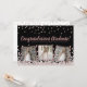 Elegante diseño de tarjeta de graduación personalizado con confitis rosa de oro y plata sobre fondo negro, tipografía moderna de escritura con las palabras "Felicitaciones Graduado" (en oro rosa) con tu nombre y año personalizado (en plata) más tres de tus fotos favoritas enmarcadas en Relieve metalizado de oro rosa metálico en la parte delantera de la tarjeta. Las plantillas de mensajes y nombres están en la parte posterior de la tarjeta.