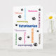 Felicito a ese estudiante de veterinaria que trabaja duro y que logró pasar por la escuela veterinaria. La palabra veterinaria aparece en muchos tipos de letra y colores diferentes en esta tarjeta de graduación única. Puede cambiar fácilmente el texto, los colores y los tamaños para convertirlo en una tarjeta de clase.