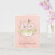 Hermosa tarjeta para graduados de medicina. Rosa con formas geométricas, rosas rosadas dentro de una taza de té. Perfecta para graduaciones. Personalízala con tu propio mensaje de felicitaciones y buenos deseos.