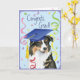 Felicite a su graduado preferido con un regalo que ofrece a un graduado australiano lindo, feliz del pastor que lleva un mortarboard en medio de una ráfaga del confeti.