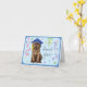 Envía gracias por tu regalo de graduación con este diseño que incluye un lindo y feliz graduado de Chocolate Labrador Retriever usando un mortero en medio de una ráfaga de confetti.