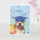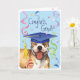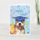 Felicita a tu graduado favorito con un regalo que incluye a un adorable y feliz graduado norteamericano de Pit Bull Terrier usando un mortero en medio de una ráfaga de confetti.