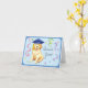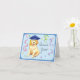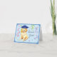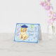 Envíe las gracias por su regalo de la graduación con este diseño que ofrece un golden retriever lindo, feliz graduado llevando un mortarboard en medio de una ráfaga del confeti.