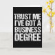 Créeme, tengo un título de negocios. Una tarjeta de humor para graduarse para felicitar a un graduado que obtuvo un máster en administración de negocios de una universidad. Una cita graciosa de un hombre de negocios, una mujer de negocios o un hombre de negocios.