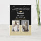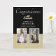 Elegante Rustic Gold Black 2022 Felicitaciones Graduado 2 Tarjeta de Graduación Fotográfica. Elegante ornamento dorado y fondo rústico beige. Personaliza con el nombre de la graduada, clase de, nombre de la escuela y agrega 2 fotos de graduados - puedes usar antes y después de las fotos. Agrega tu mensaje dentro o borra. Hacer una tarjeta única para un graduado de secundaria, universidad o universidad.
