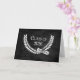 2026 graduation card with an elegant white laurel wreath symbol and diploma on a black leather textured background.
