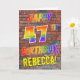 El frente de este divertido, vibrante y emocionante diseño de tarjetas de felicitación con temática de cumpleaños incluye el mensaje "FELIZ CUMPLEAÑOS 47" con letras que tienen un arcoíris multicolor como patrón gradiente, y un nombre personalizado de color amarillo, en un fondo de patrón de pared de ladrillos. La apariencia está inspirada en el graffiti o arte callejero dibujado en una pared. El interior incluye un mensaje de bienvenida de cumpleaños que se puede personalizar. Una tarjeta de felicitación divertida, feliz, de cumpleaños de personalizable como esta puede ser una manera especial de enviar un saludo de cumpleaños a alguien que celebra su cumpleaños 47. [~Z0000357]