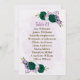 tarjeta gráfica de flores moradas esmeraldas verde