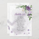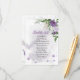 flores moradas románticas y hojas verdes bodas carta de cartas de asientos.