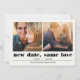 Tarjeta fotográfica de postergación de tipografía gráfica contemporánea y mínima en negrita. Moderno, minimalista y súper moderno cambia la tarjeta de fecha para notificar a su invitado que sus planes de boda han sido cambiados. Otros colores disponibles