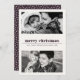 Tipografía gráfica contemporánea y mínima audaz "Feliz Navidad" que incluye 2 de tu mejor foto paisajística y un mensaje personalizado. La parte posterior de la tarjeta presenta un pop de color de coordinación (burgundy) con un patrón estrella de invierno Cualquier color disponible bajo petición