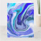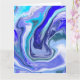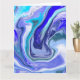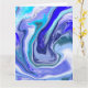 Tarjeta de cumpleaños de arte con líquido de mármol azul y blanco.