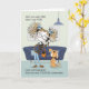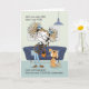 Un chica joven super lindo con el pelo rubio curvado y un cachorro a juego como amigo crean un saludo adorable para mandar a la bisnieta que te estás perdiendo.