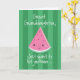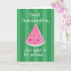 ¡Qué tarjeta tan divertida y "punny" que mandar a tu bisnieta a saludar y a que sepas que estás pensando en ella! Ella es tan especial que es "una en un melón!" Frente a un fondo verde de dos tonos, hay una hilera de sandía rosa.