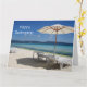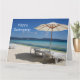 Tarjeta fotográfica con paraguas de playa y asientos de salón - perfecto para vacaciones, despedidas y retiros - personalizar frontal y mensaje interior. Gran tamaño perfecto para despedidas de oficina.