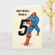 Celebra con tu lindo y gran sobrino con esta tarjeta. En el frente hay un gran número cinco que significa su edad. Un superhéroe también está presente y parece estar apresurándose a enviar sus saludos también. Obtén esta tarjeta ahora antes de que ocurra la gran celebración.