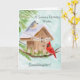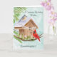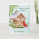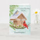 This hand-painted watercolor features a charming birdhouse adorned with a Happy Birthday banner, as a tufted titmouse and a cardinal stop by on a crisp January winter day. Soft seasonal details and gentle colors create a warm, thoughtful scene, making it a lovely birthday piece for granddaughter who celebrates in January.