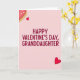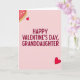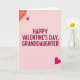 This Valentine's Day card features a pale pink background with a sweet, simple layout. In the center, bright red text reads “HAPPY VALENTINE’S DAY, GRANDDAUGHTER,” set in a rounded, easy-to-read letter style. The message feels direct and caring, like a warm note meant just for her. In the upper left corner, part of a heart-shaped cookie peeks in, with a light golden crust and tiny white sprinkles on top. Near that cookie, a small red heart floats gently, adding a quiet touch of affection. A larger red heart sits in the lower right corner, balancing the design and making the page feel lovingly framed. The pink and red colors together feel cozy and romantic, making it a meaningful card to give 🥰❤️. Hope it helps you share Valentine’s Day sentiments in a warm, caring way.