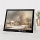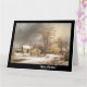 Hermosa pintura americana de Durrie de una granja campestre con un granero y una persona que regresa a casa en un día nevado, con versículos bíblicos sobre lo que significa la Navidad, está en esta tarjeta grande de salutación de Navidad con escrituras.