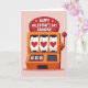This card shows a classic slot-machine illustration in pumpkin-orange set against a blush-pink background, turning a familiar game scene into a sweet Valentine moment ❤️. At the top, an oval sign holds the message “HAPPY VALENTINE’S DAY GRANDMA!” in rounded white letters, with tiny pink hearts sprinkled around the words. The machine sits centered in a tidy, balanced layout, and its warm orange casing pops gently against the soft backdrop. Three large reels line up across the middle, each showing a plump ruby-red heart on white, like a lucky match that feels like a loving wink 🥰. Below them, a smaller dark display adds contrast, with six little white squares, each holding a small red heart. Soft shading and light gradients give the machine a slightly raised look, while reds and pinks echo the affectionate theme without needing extra decoration. On the right side, a red knob tops the lever, positioned as if it was just pulled, with the handle angled beside the orange frame.