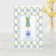 El diseño de esta tarjeta de notas de topiario personalizada presenta un fondo de entramado azul y verde muy moda con un topiario coordinado en forma de conejo en un jarrón de jengibre de chinoiserie azul y blanco. El interior se deja en blanco para que escribas tu mensaje personal, o compra entre 8 y 10 tarjetas y las empaquetas con un hermoso arco para un regalo de una anfitriona amable.