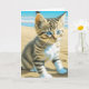 Tarjeta Gray Tabby Kitten jugando en una playa