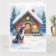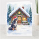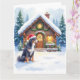 Tarjeta Greater Swiss Mountain Dog Snowy Cabin Santa Hat