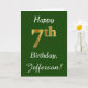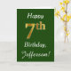 Tarjeta Green, Faux Gold 7Cumpleaños + Custom Name