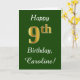 Tarjeta Green, Faux Gold 9Cumpleaños + Custom Name