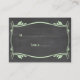 Elegante y de moda Flourish Chalkboard Place Card con un toque de pizarra y un elegante borde de estilo Art Déco en verde menta. Se proporciona espacio en este producto para escribir los nombres y números de la tabla donde cada uno de sus invitados estará sentado. Haga clic en "Personalizar" para encontrar más opciones de personalización.