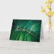 Gracias tarjeta de felicitación con una foto de cierre de una hoja tropical verde con algunas frondas de palmera vibrantes.