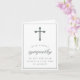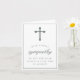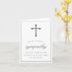 Tarjeta de simpatía minimalista en blanco con una cruz gris, un borde gris y fuentes grises elegantes.