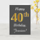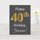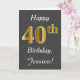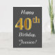 Tarjeta Gris, Faux Gold 40 cumpleaños + Nombre personaliza