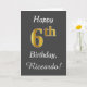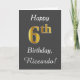 Tarjeta Gris, Faux Gold 6cumpleaños + Nombre personalizado